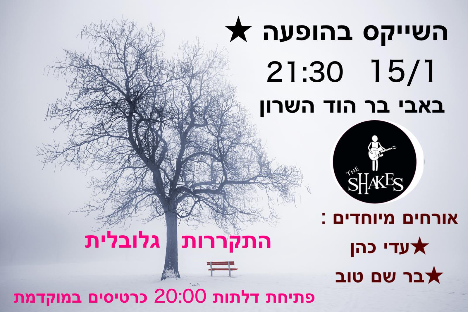 השייקס – להקה הוד השרונית שמנגנת רוק מקורי בעברית ואנגלית בהופעה בסיבוב עם האלבום האחרון ״התקררות גלובלית״ מארחים את : עדי כהן בר שם טוב