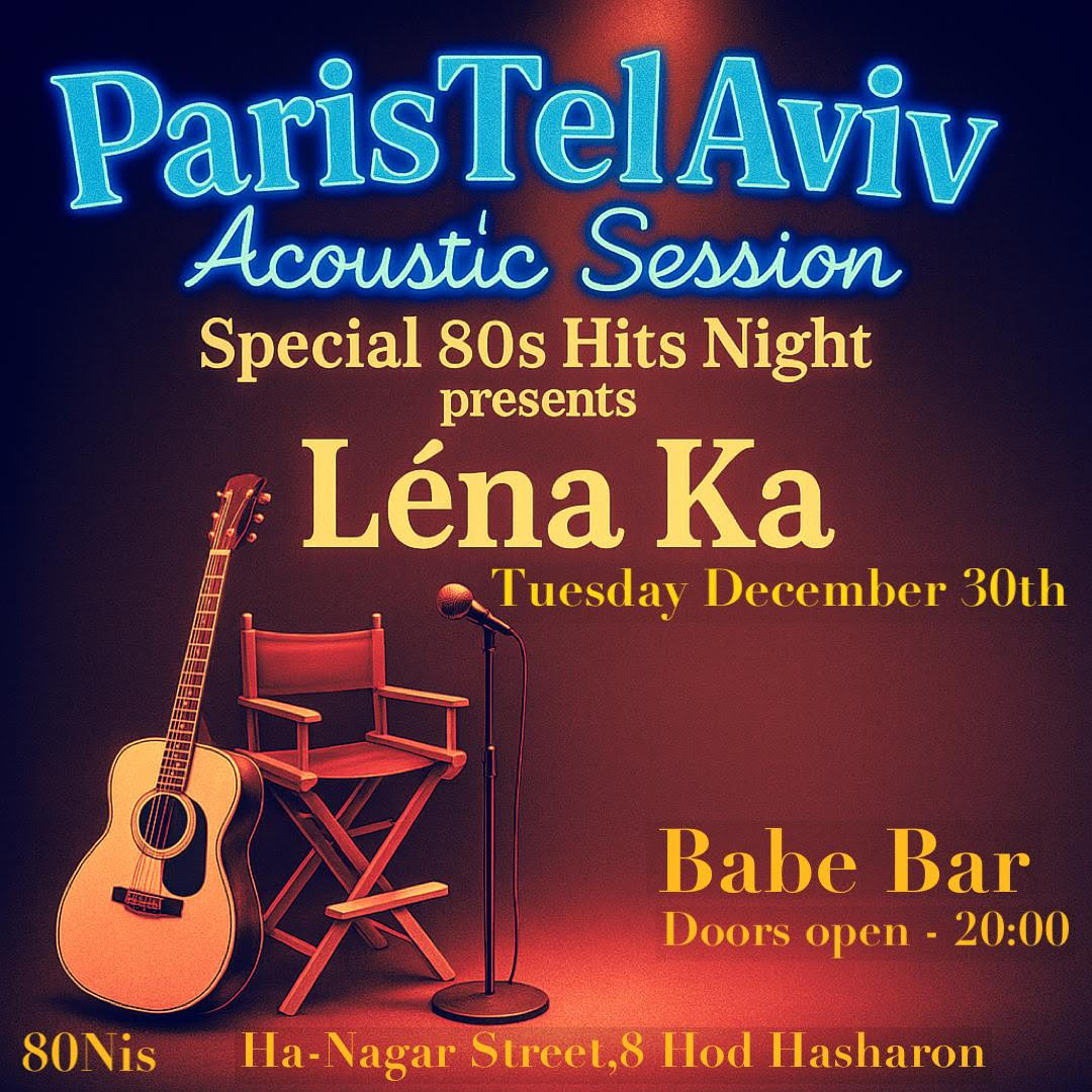 For the occasion, Léna is preparing — together with her French–Israeli musicians — a truly unique evening dedicated to the greatest hits of the 80s in an acoustic version.